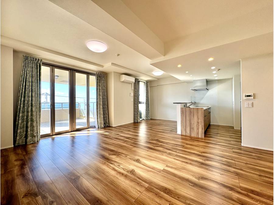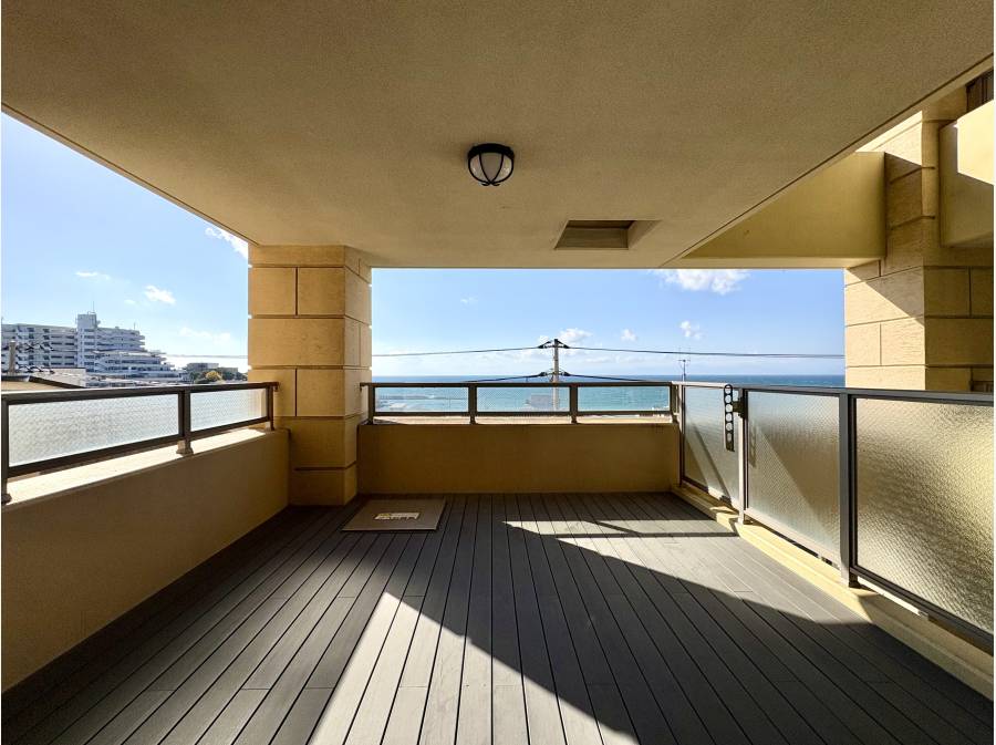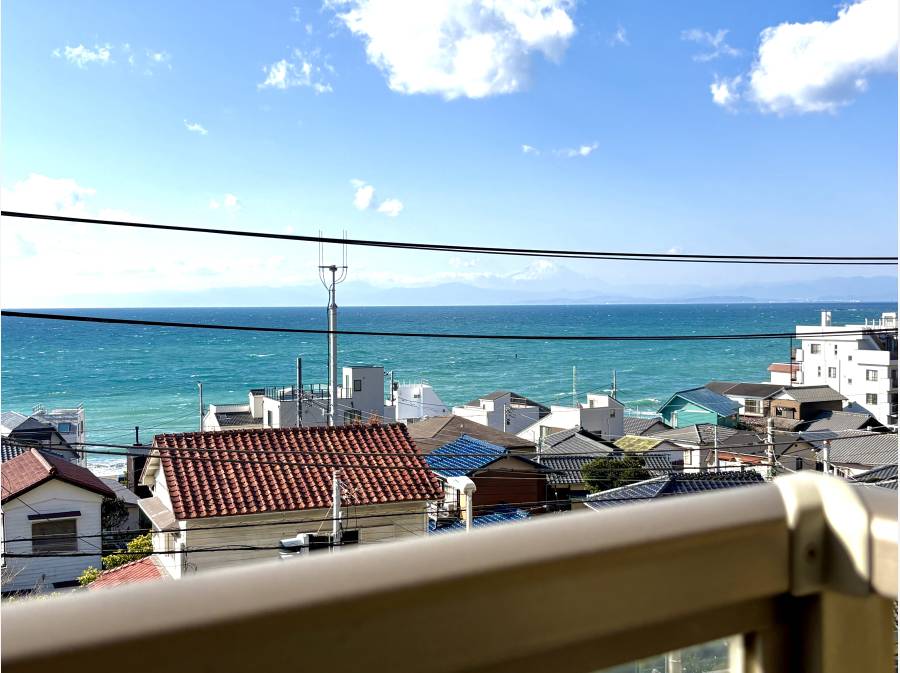 海と富士山と夕陽を望む贅沢。駐車場付き。フルリフォーム済みの21.2帖LDKの先に広がるバルコニー
