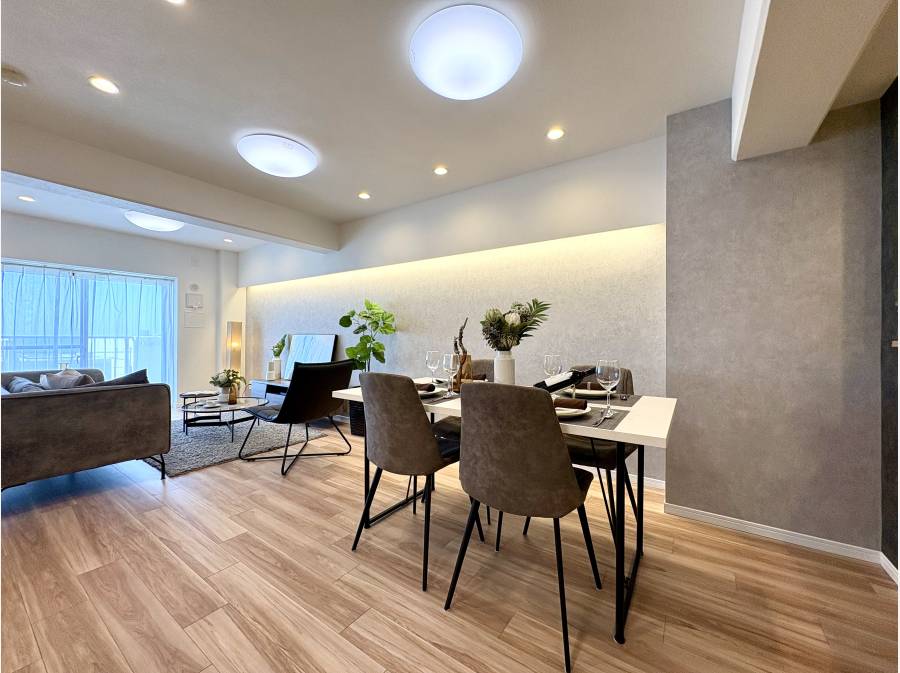 約17.1帖の広々としたLDKは、家族や友人が集まるリゾート拠点として最適。