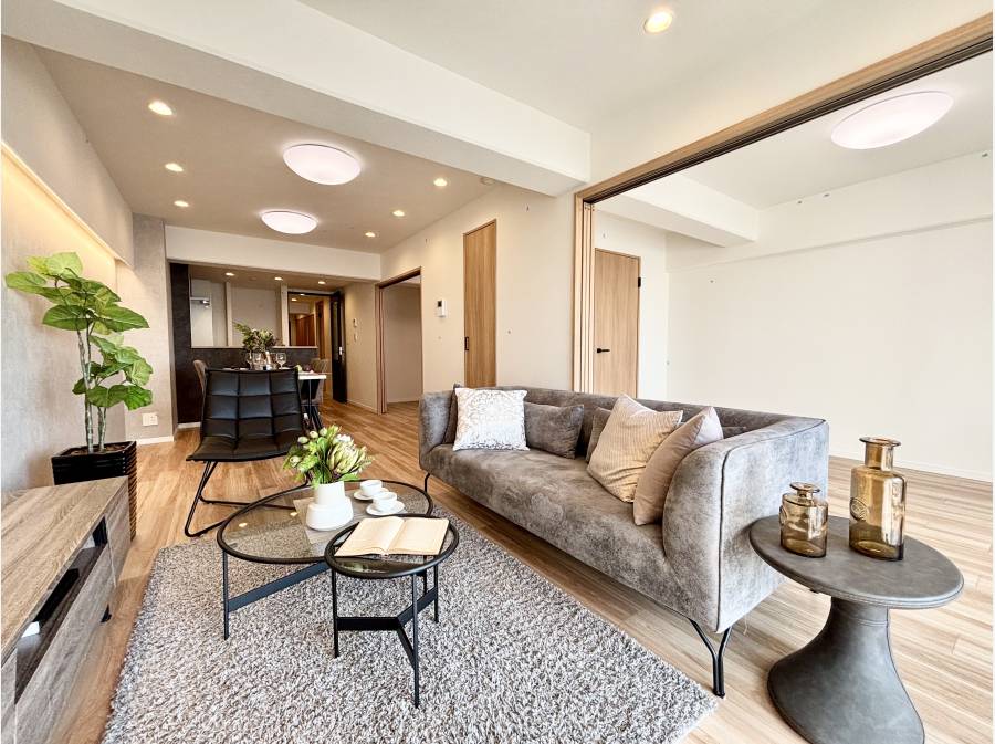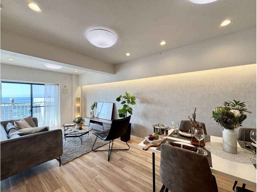 リビングに座るだけで、「景色が主役」の空間が完成。室内はフルリノベーション済みで、デザインと機能性が調和した心地よさが魅力的です。