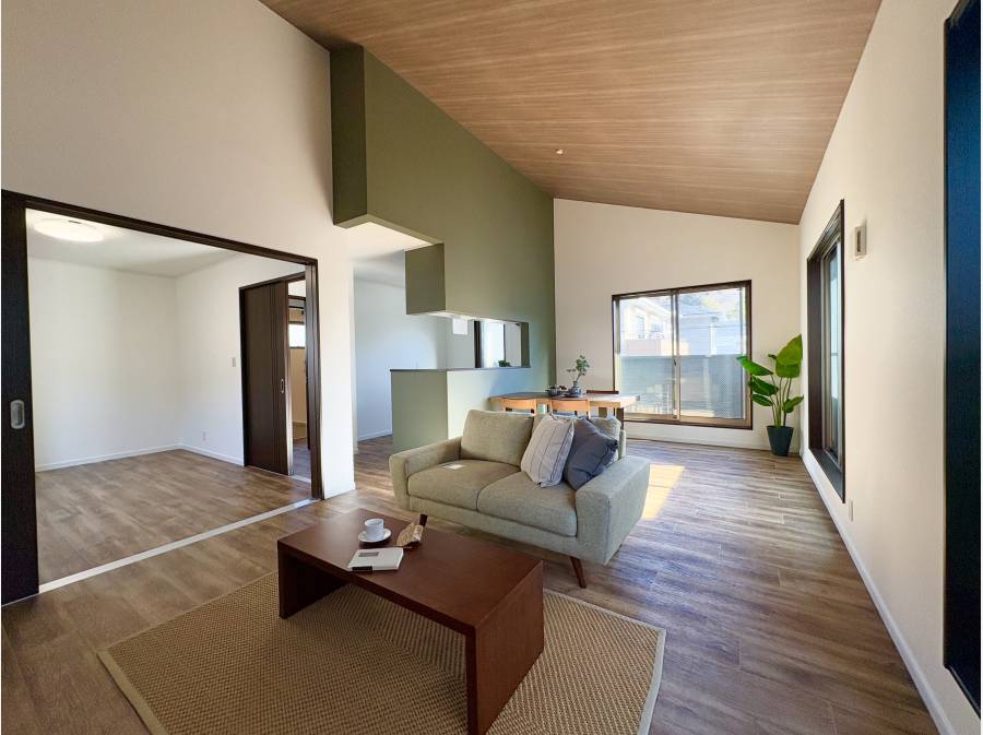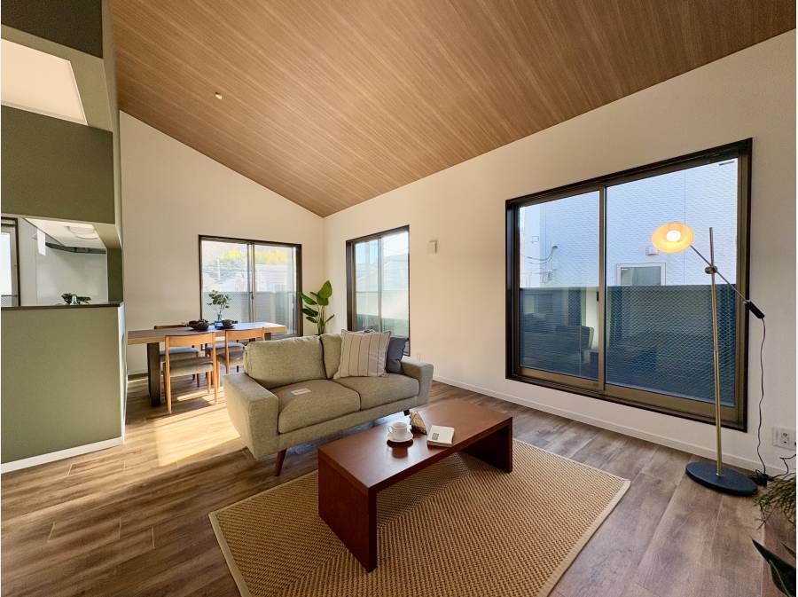2階にある広々とした約18帖のLDKは、高い天井による開放感が魅力です。