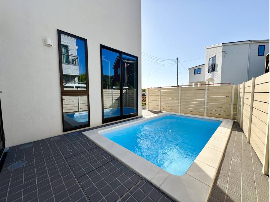 屋外にはプールがあり、非日常を感じるプライベートリゾートを堪能できます。2LDKの間取りは、居住用はもちろん、セカンドハウスや別荘にも適した設計です。