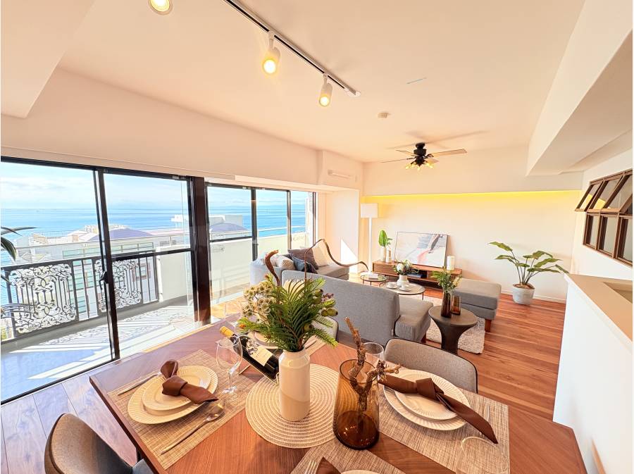 海を庭のように楽しめるLDKは、時を忘れてしまうほどの景色が広がります。
