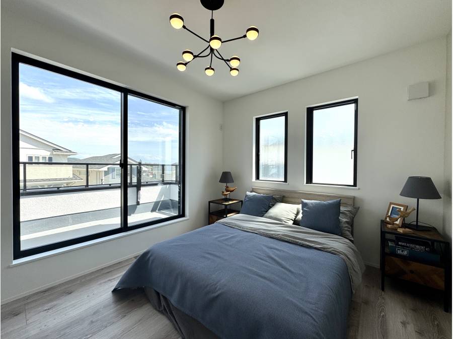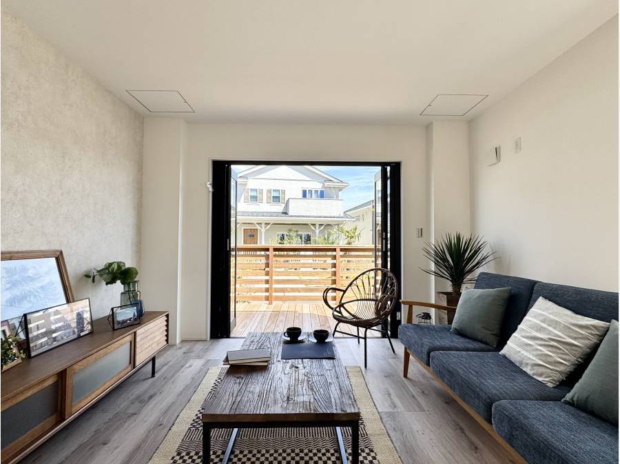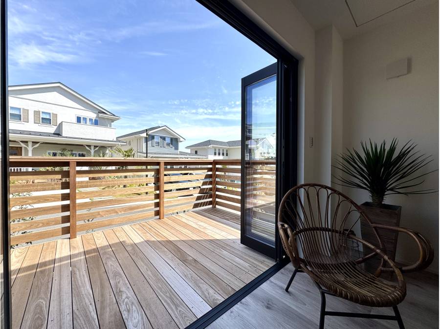 ウッドデッキにつながるリビングやベッドルームからつながるワイドバルコニーなど他にも魅力が詰まっております