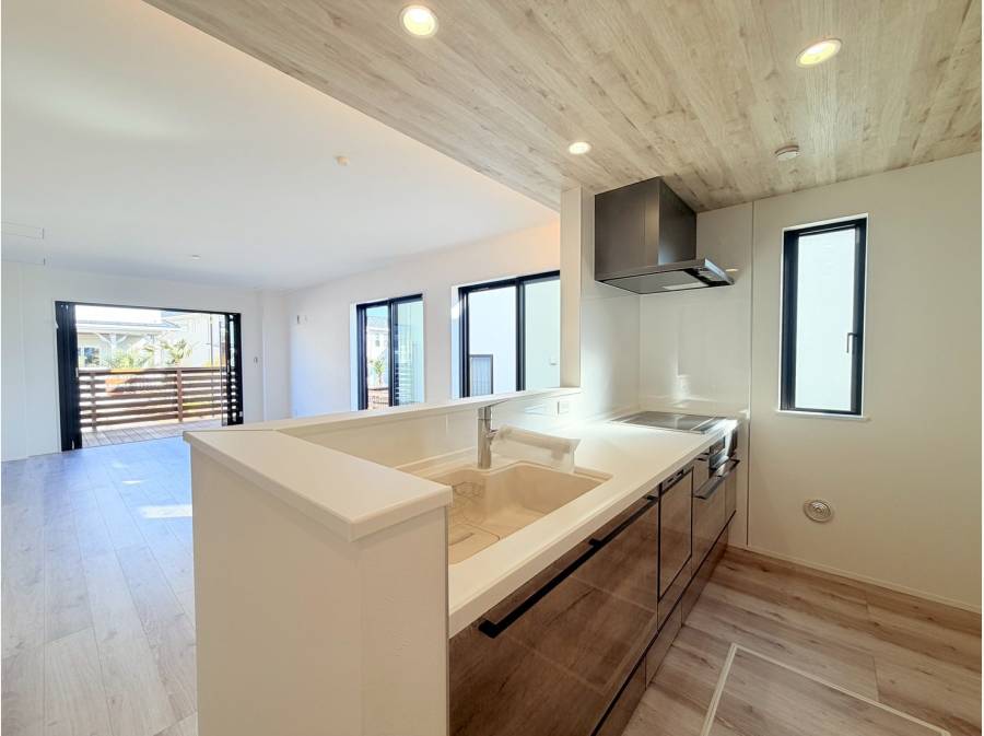 リビングの先にはウッドデッキ調のテラスが広がり、サッと外に出て風を感じるそんな日常も素敵ですね!