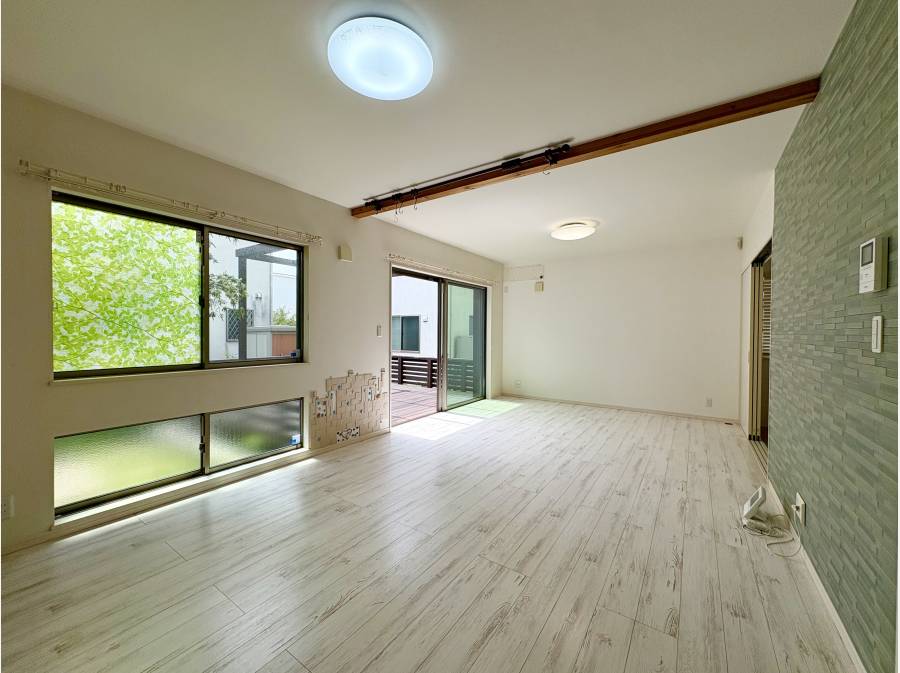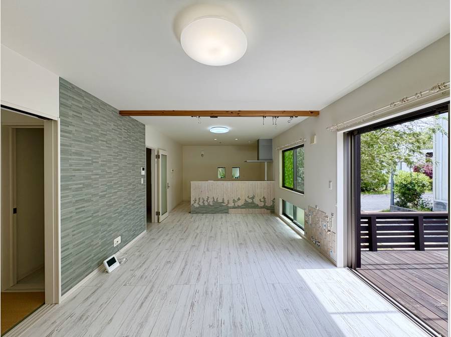 約19帖の広々としたLDKに加え、リビングに隣接するウッドデッキスペースがあり、家全体の空間をさらに広く感じることができます。