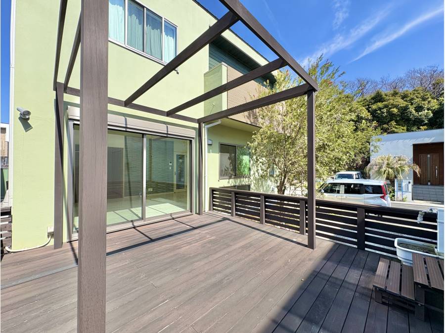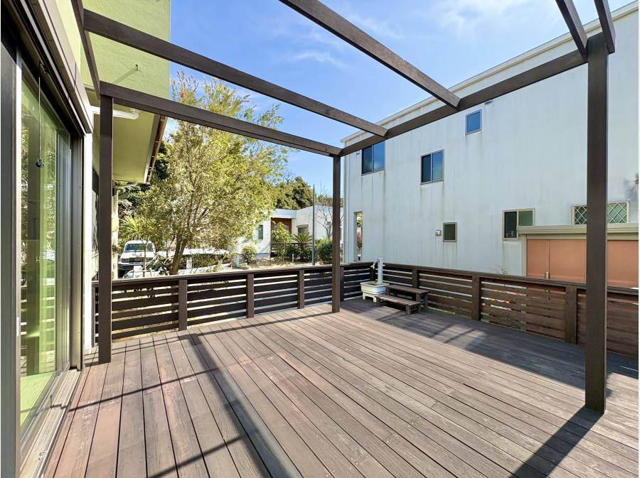 お庭には、大きなウッドデッキがあり、色々な用途でお使いいただけます。
