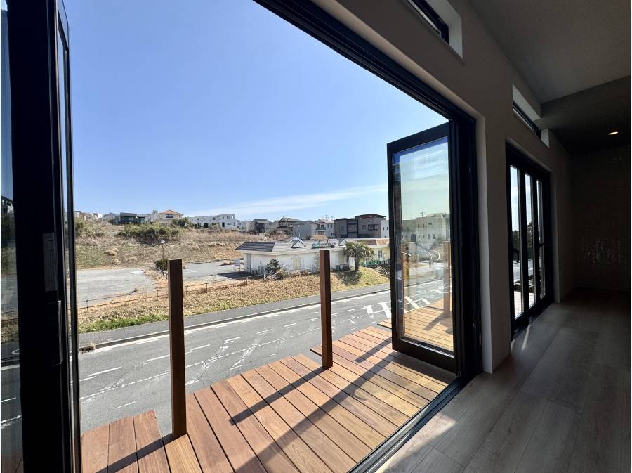 リビングの先に広がるウッドデッキからは、穏やかな相模湾を望み、心地よい潮風が通り抜けます。