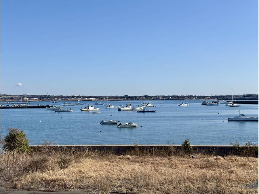 穏やかな水面の先の佐島マリーナを横目にお散歩コース。