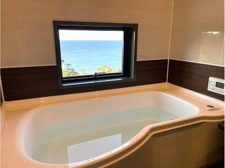 抜ける風が気持ちの良いウッドデッキや、海に面して設計された居室、浴室からの眺めは贅沢そのものです。