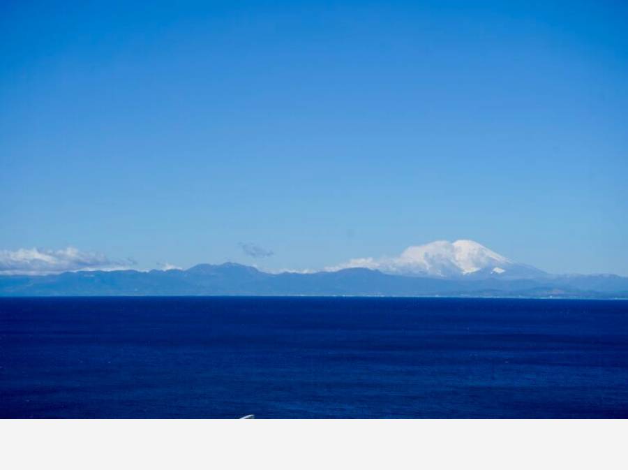 窓を開ければ、対岸の磯に響く波音が心地よいリズムを刻み、目の前には空と海が溶け合う相模湾の大パノラマが広がります。
