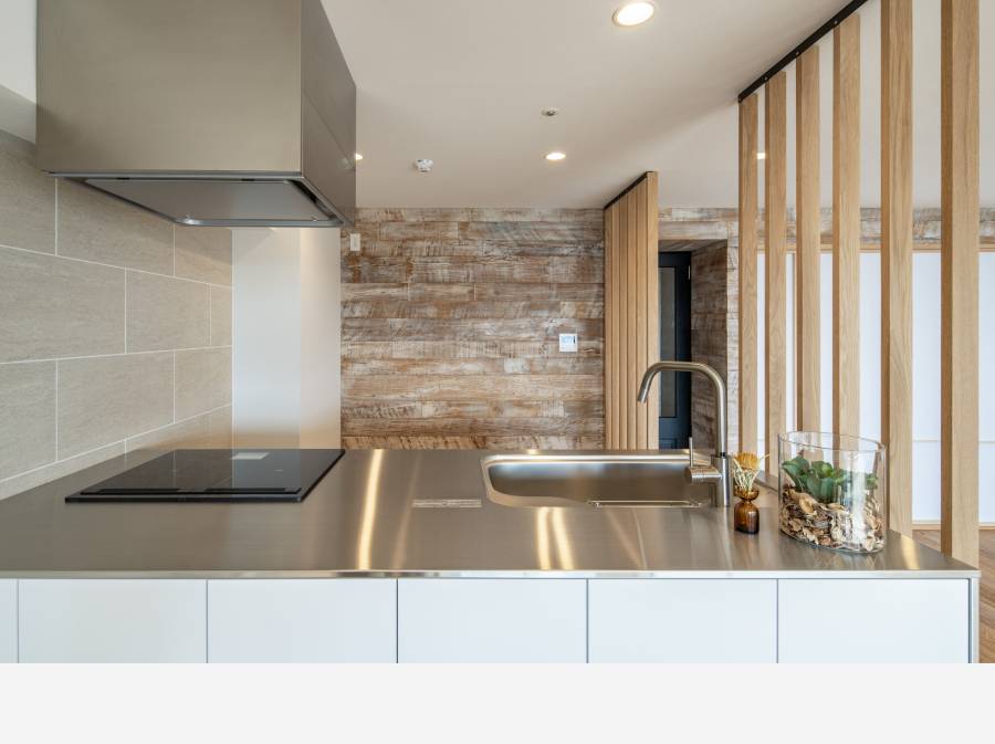 約26帖のLDKはゆったりとした開放空間で、キッチン周りも広く取られております。