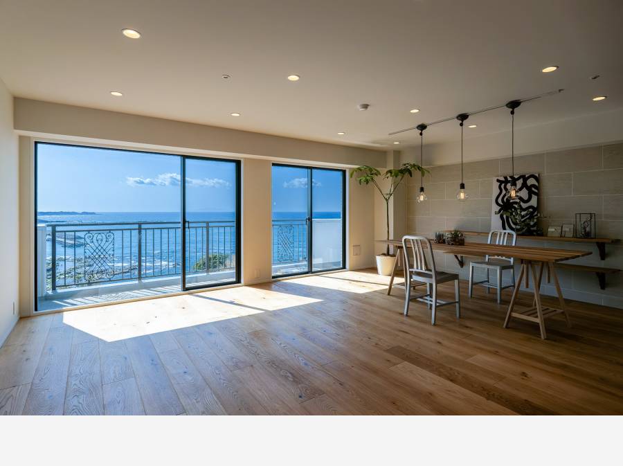 お部屋は南向きで日当たりも良く、大変開放的で相模湾を見下ろす眺望も素晴らしいお部屋です。(バルコニーからは富士山・江ノ島を眺望)秋谷地区の他リゾートマンションに比べ国道134号に面しておらず車の音はほぼ聞こえない静かな落ち着いた環境を有しております。