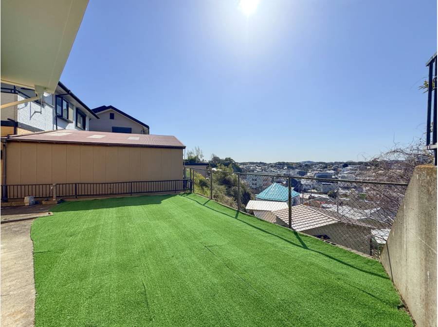日当たりの良い南庭は人工芝を敷き詰めてあります。気持ちいい場所。