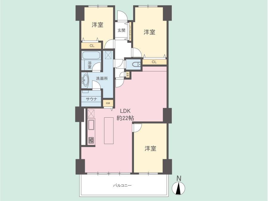 22帖のゆとりと南向きの陽だまり