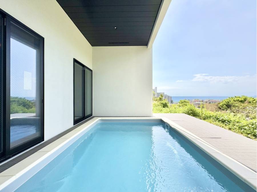 リビングからだけでなく、プールで遊んでいながらも海を望むことができます。