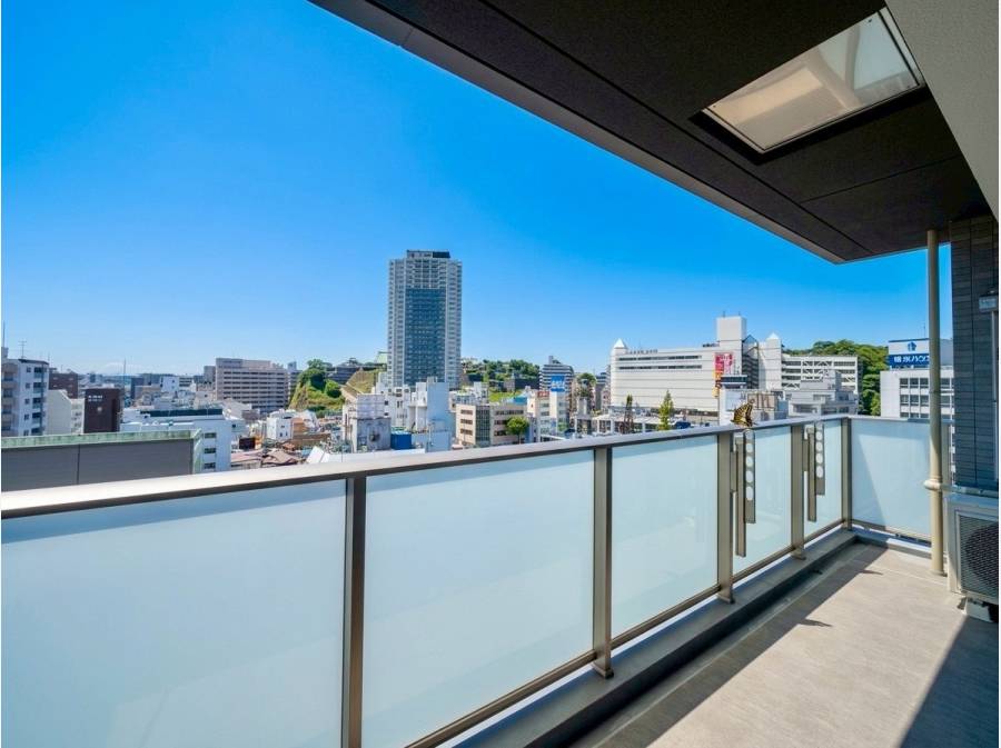 バルコニーからは、横須賀の活気ある街並みを見下ろすパノラマビューを独り占め。
