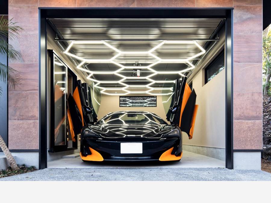森に囲まれたガレージハウス。細部にまで拘った意匠は高級感がございます。