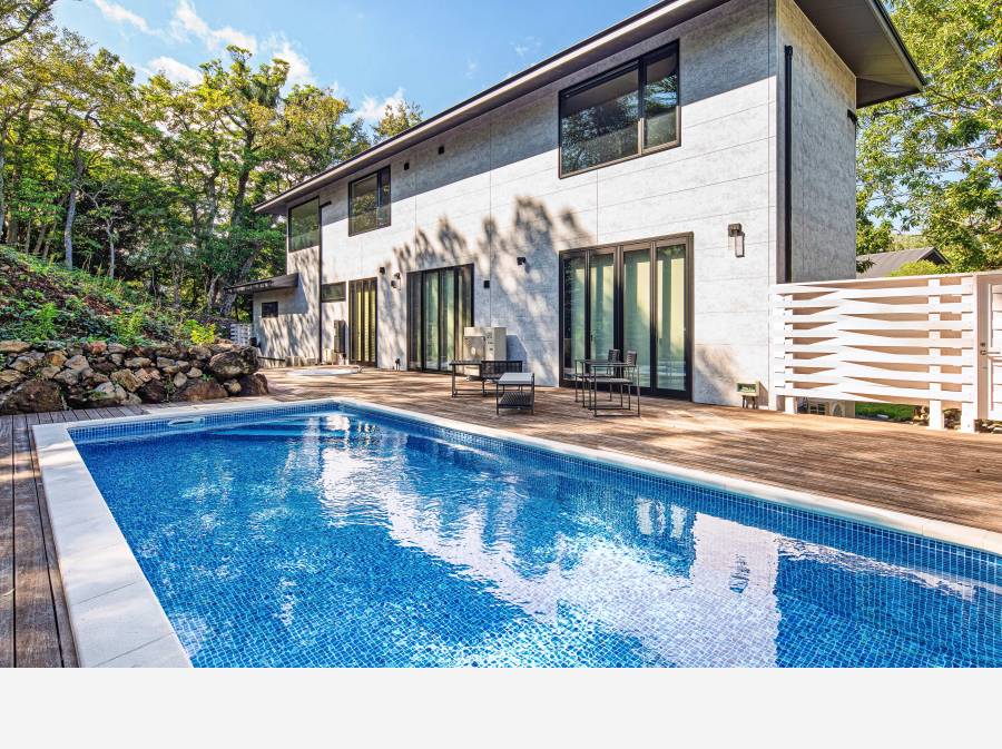 今回はお引き渡し後すぐにご利用可能な家具付き、プライベートプール、天然温泉、ガレージ付きのラグジュアリーなリゾート物件です。