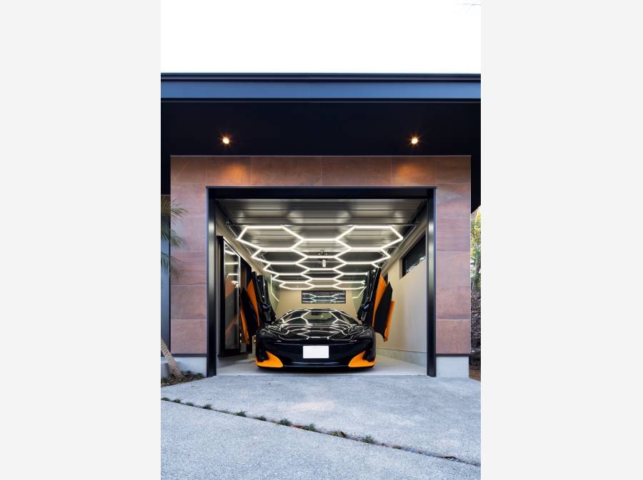 大切な愛車は電動シャッター付きのビルトインガレージ(約14帖)に、来客用で別途3台のスペースがございます
