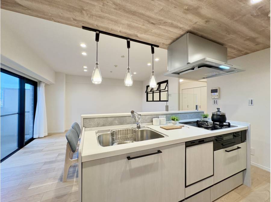 アイランド型キッチン、フロアタイル、水回り、フローリング、クロス等をフルリフォームしたマンションのご紹介です!