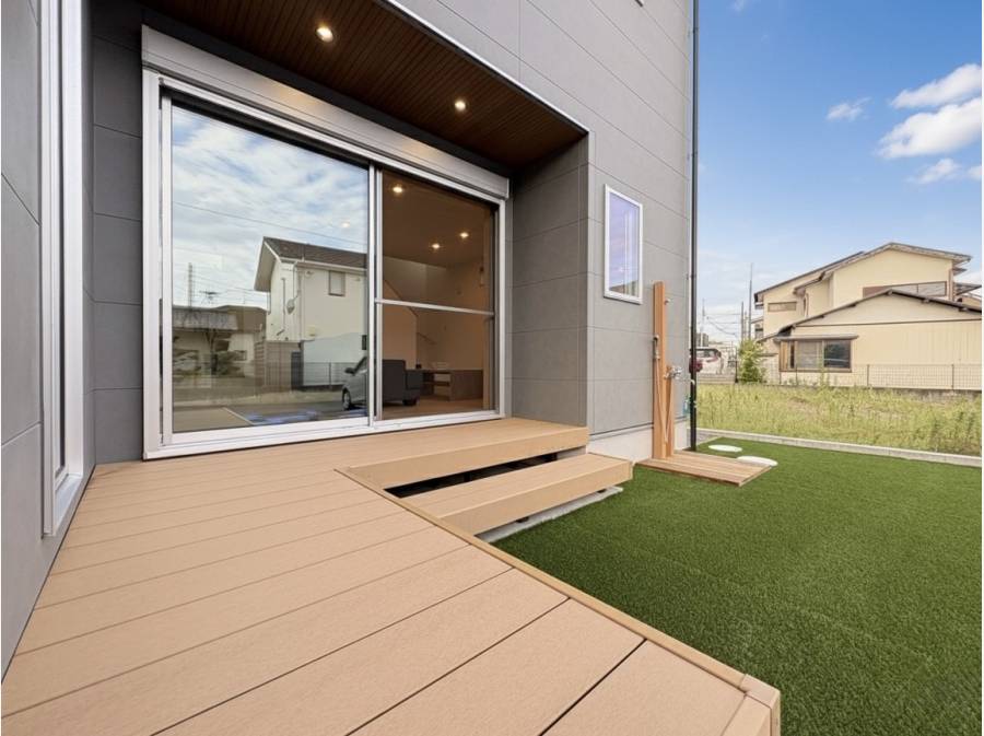 デッキ付きお庭でアウトドアリビングを満喫♪