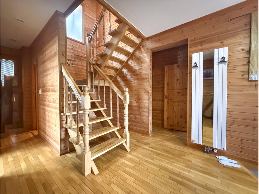 スウェーデン製の二重サッシペアガラスや無垢材の床、自然素材の珪藻土などを使用しております。