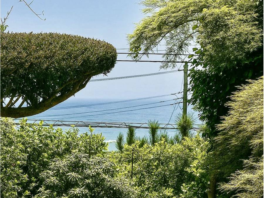 敷地は高低差があり、ちらりと見える水平線が海の近かさを感じさせてくれます。