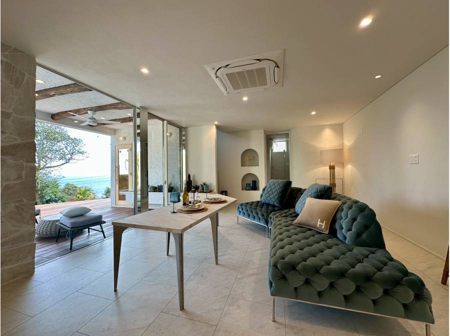 ご紹介の物件は、周囲を緑に囲まれ、眼下に広がるのは遮るものが無いオーシャンビュー