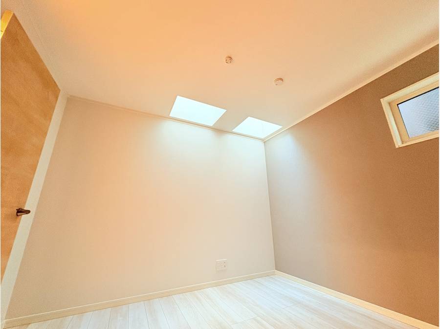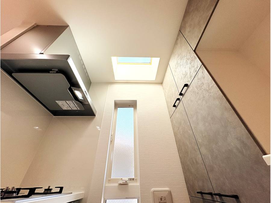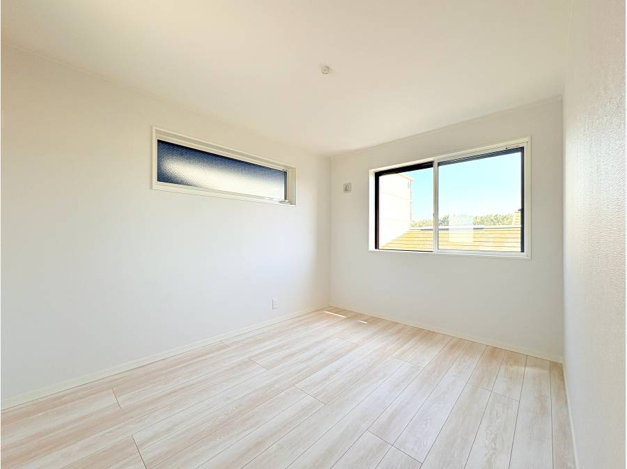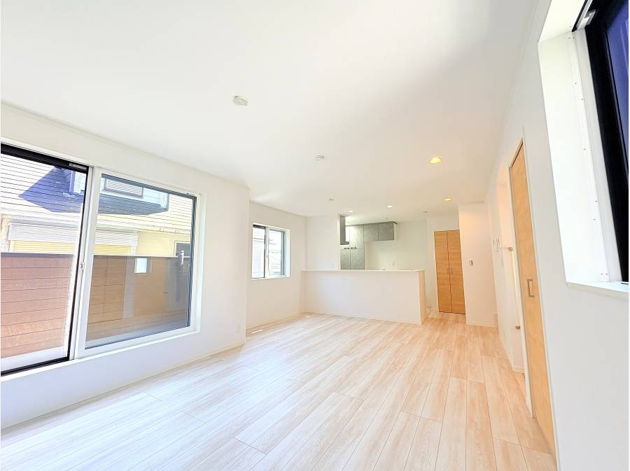 2階の居住スペースは、大開口の窓や天窓から自然光がたっぷりと降り注ぐ、明るく開放的な空間です。ご家族が集まる広々としたLDKは、ゆったりとくつろげる心地よい設計。さらに、窓からは視界が抜け、遠くの山々や広がる青空を見渡せる眺望が広がり、家にいながらリゾートのような心地よさを味わえます。