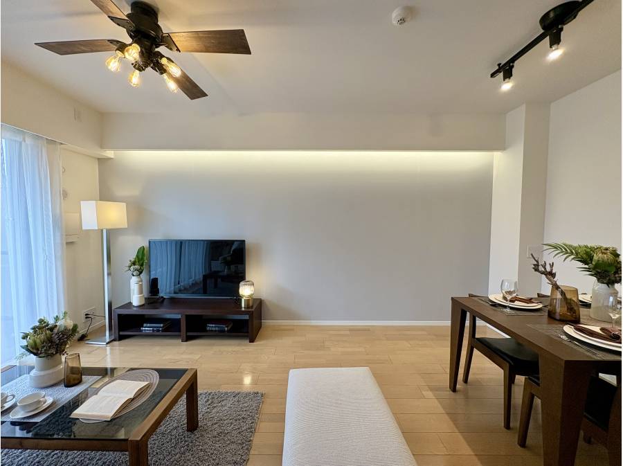 12.5帖のLD。壁に取り付けられた照明が上品な空間を演出します。