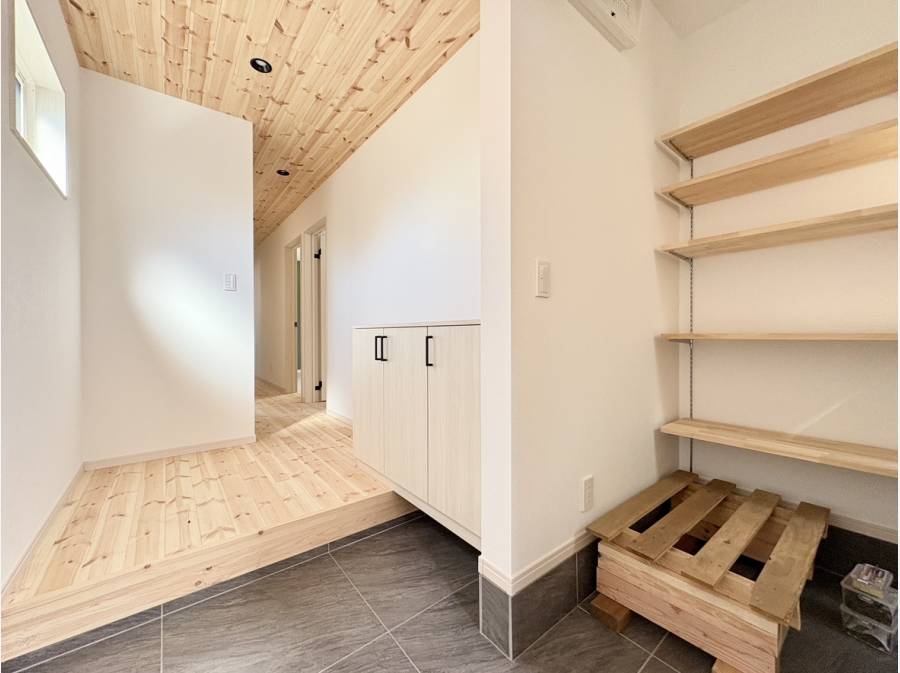 玄関スペースから、木のぬくもりを感じられる空間が広がるお住まいです