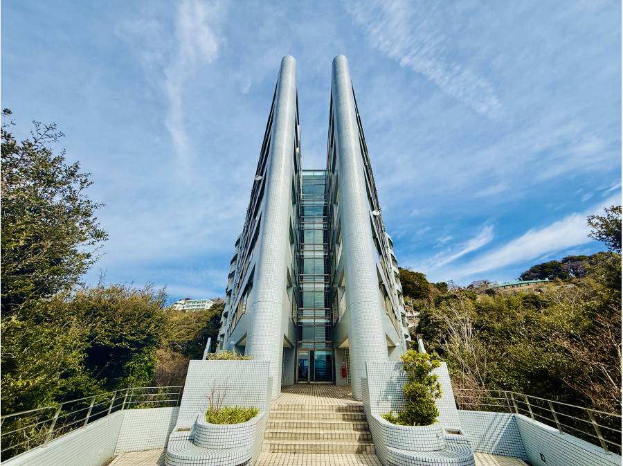 最上階、視界を遮るもののない圧倒的な開放感。船首を彷彿とさせるシャープな造形美が目を引くレジデンスです。
