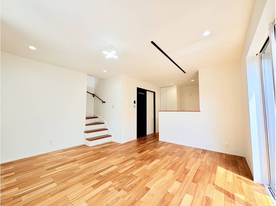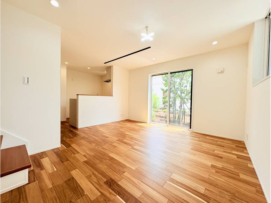 約13.6畳のLDは、美しい木目の床が広がる明るい空間です。