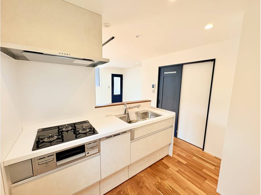リビングを見渡せる対面式キッチンには、後片付けを助ける食洗機が備わっています。