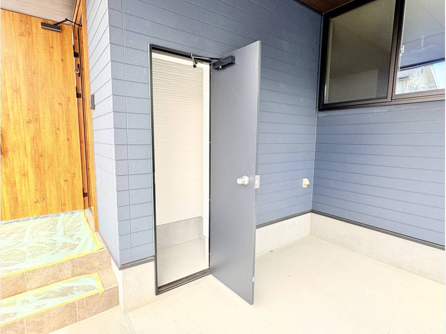 外シャワーや駐車場横の収納庫は、海遊びやアウトドア好きの方にぴったりですよ。
