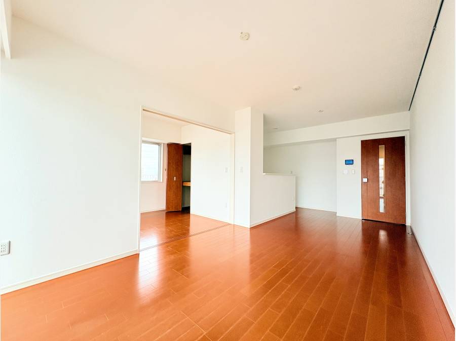 約11.1帖の光が差し込むリビングダイニングは隣接する約5.8帖の洋室の引き戸を開放することでさらに広々とした空間として活用できます。