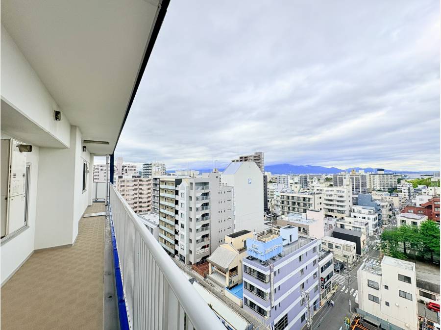 9階の角部屋なので眺望が良く、約27平米もある広々としたバルコニーからは開放的な景色を楽しめますよ。