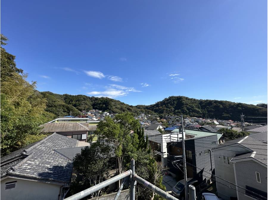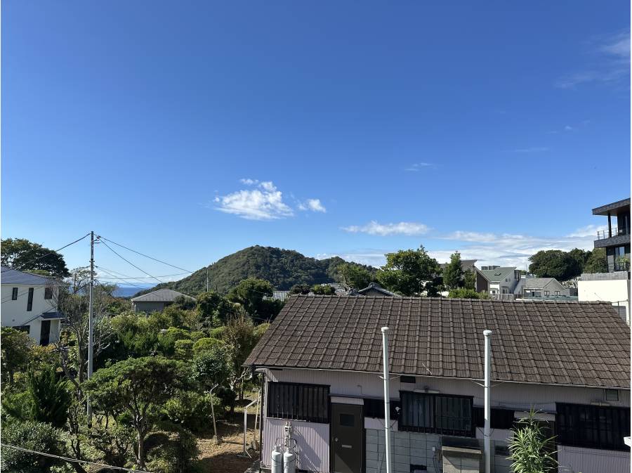 住宅街にありながら、山の緑と海の気配を同時に感じられる特別なポジション。