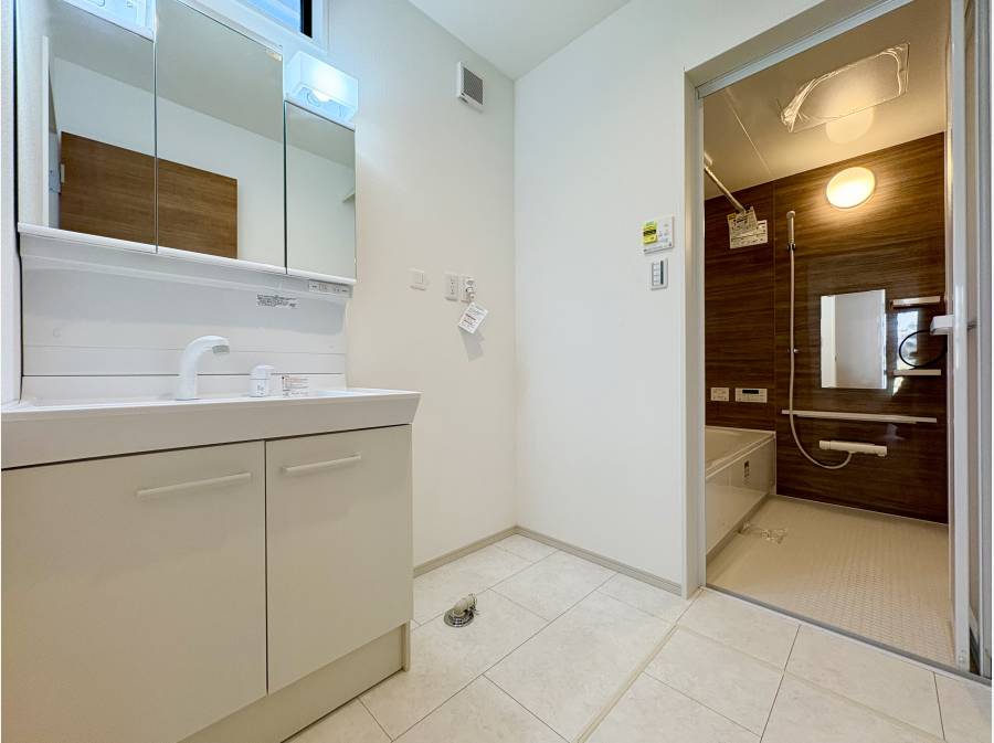 並列して車を2台駐車できるスペースがあり、前面道路も広いため駐車もスムーズ。毎日の暮らしにゆとりをもたらします。