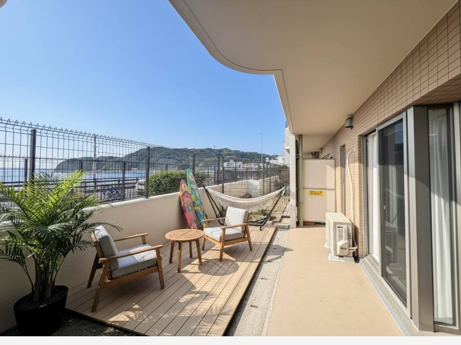 逗子海岸花火大会が望める南西向きテラス付き(家具などはイメージです)