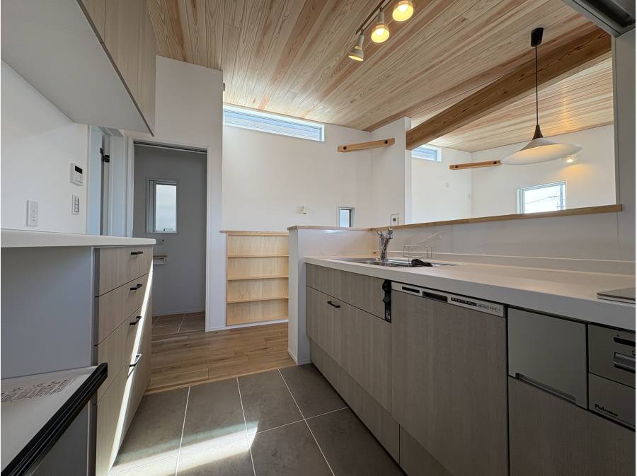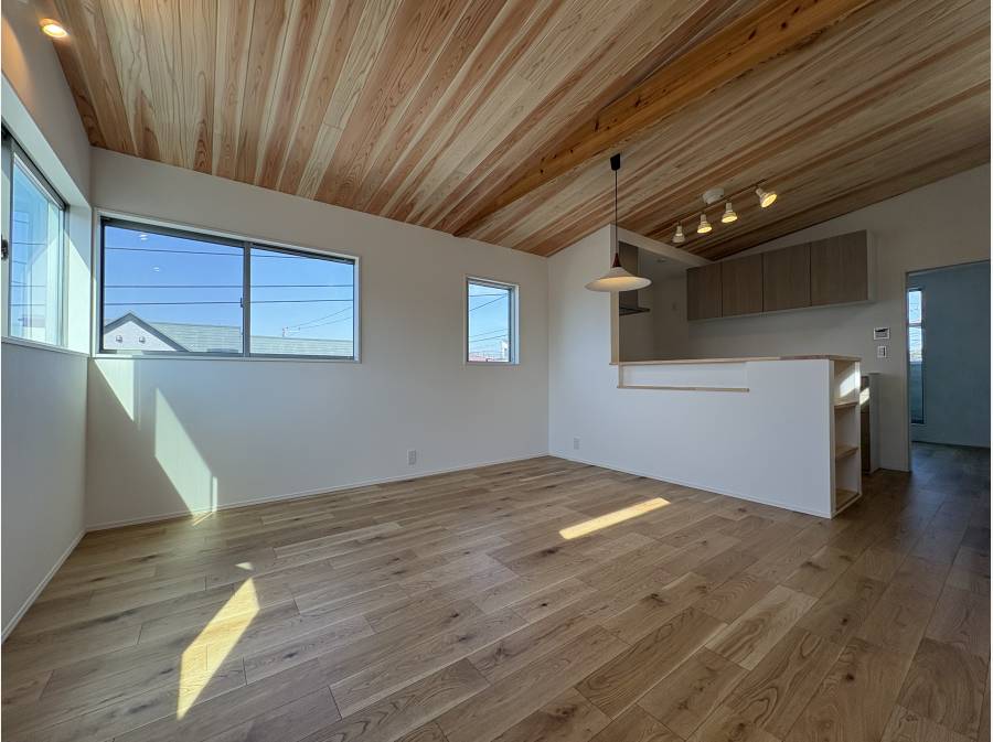 杉板張りで仕上げ、天然木ならではの温かみを感じられる空間設計に。