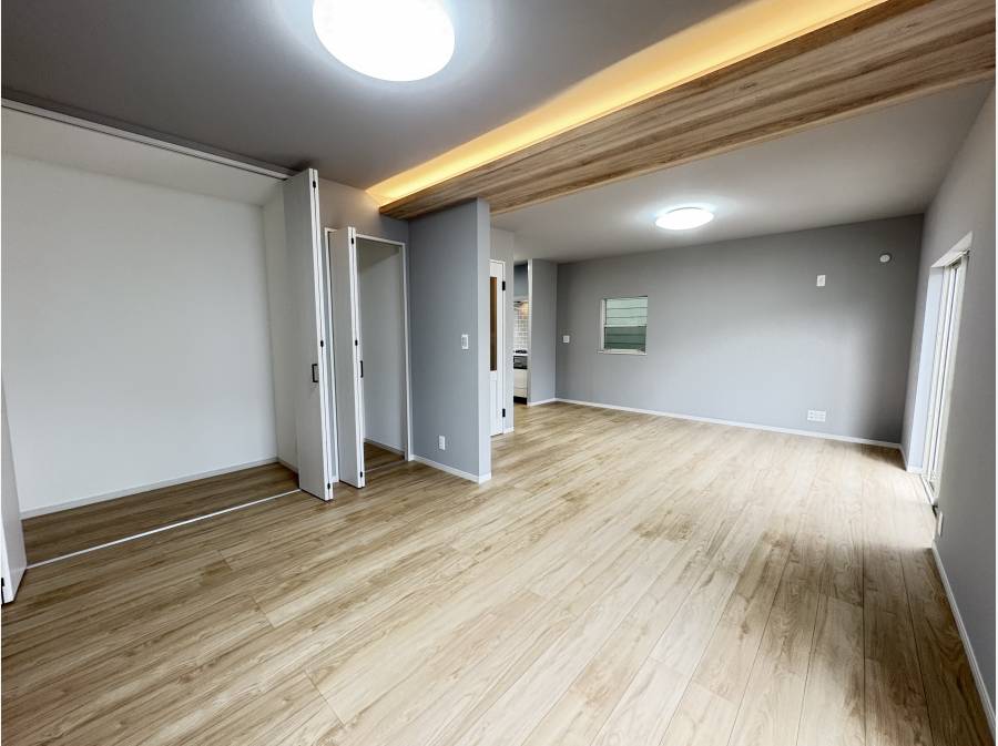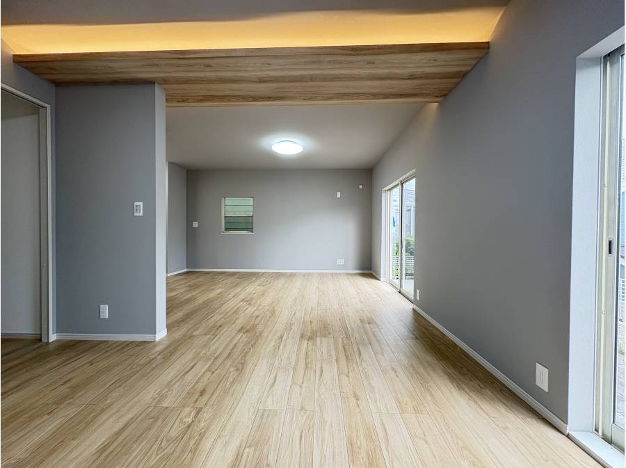 まず玄関を抜けると、約18.2帖の広々としたリビング・ダイニングが迎えてくれます。明るい光が差し込む開放的な空間は、ご家族が自然と集まる空間です。