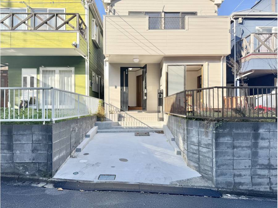 葉山の高台に広がる「葉桜分譲地」内。東南道路に面し、陽当たりと開放感に恵まれた4LDKの戸建リノベ物件です。