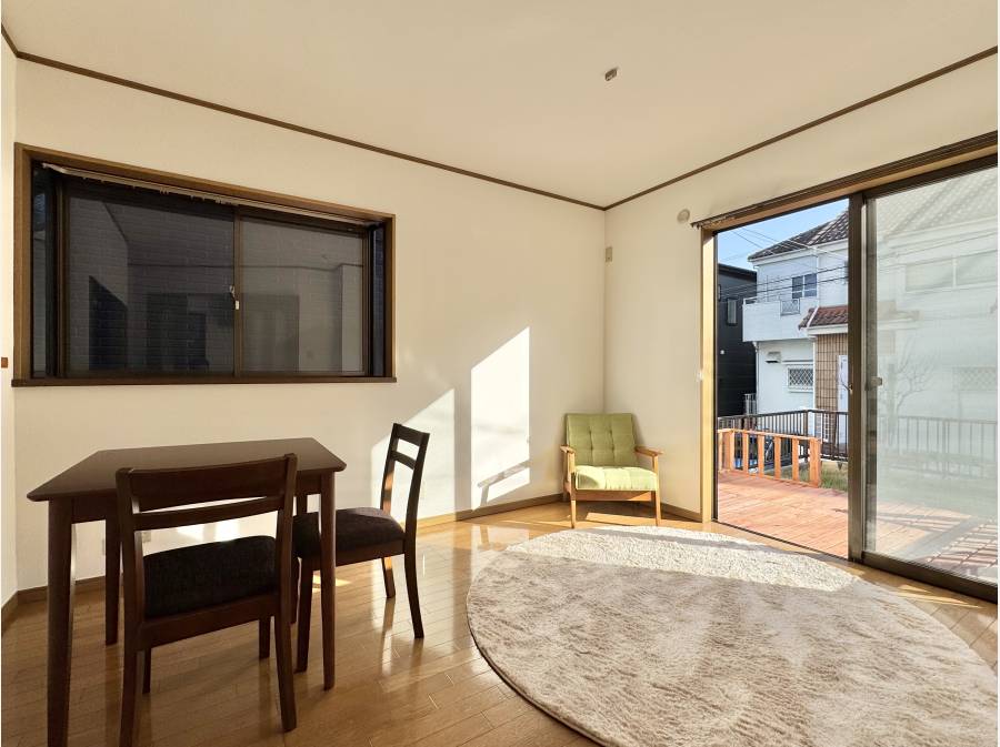 ちょこっとお庭、週末のウッドデッキ。陽だまりのあるリビング。すっと通る風が心地よい。