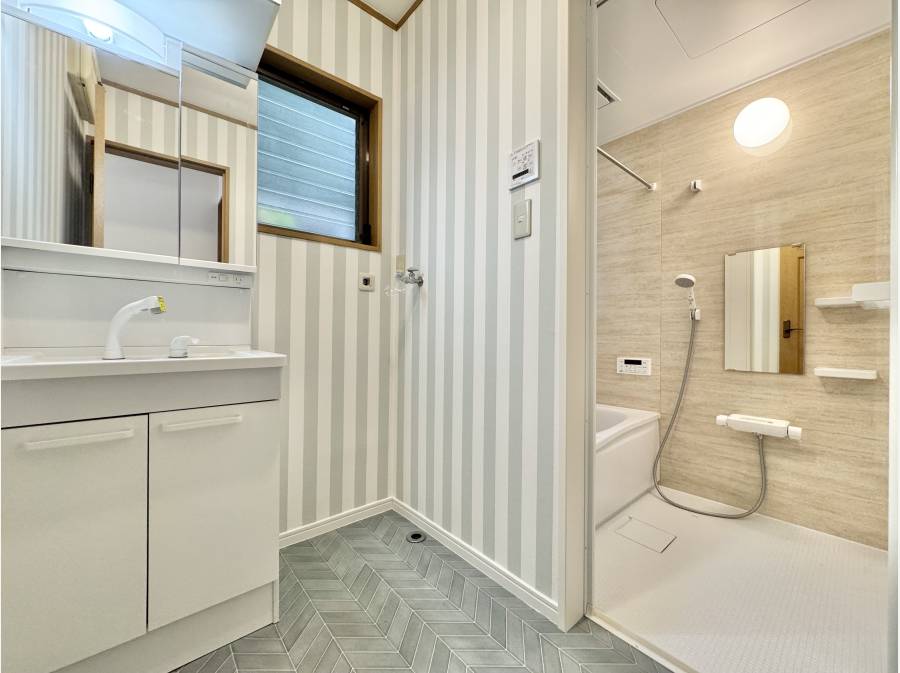 令和7年4月に内外装フルリフォームが完了し、外壁塗装からキッチン・バス・洗面等の水回り、壁紙・床材の張替えまでしっかりと手が加えられています。さらに庭には新設ウッドデッキ、屋根裏には大容量の収納スペースを確保。