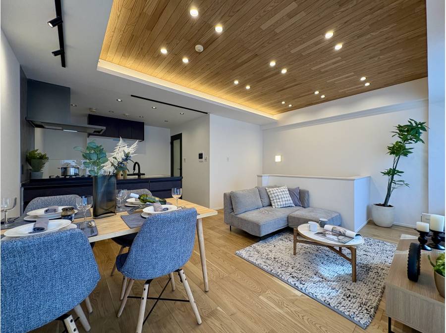 天然木の温もりが、室内にいながらも自然との繋がりを感じさせ、心安らぐ上質な空間を演出します。