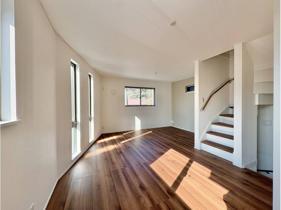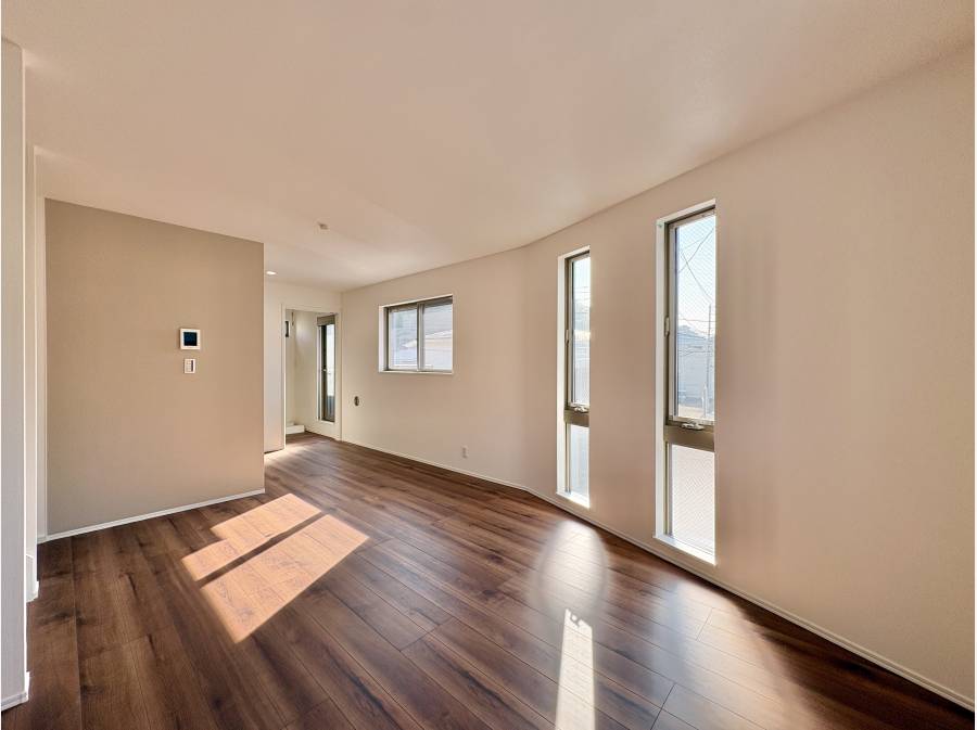 リビングには大きな窓があり、心地よい日差しが差し込む明るい空間です。