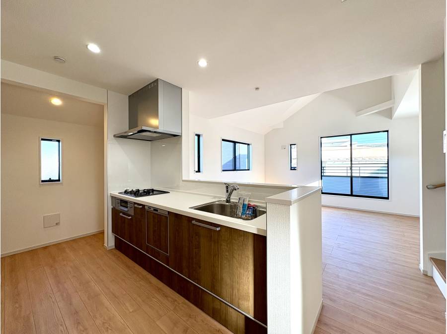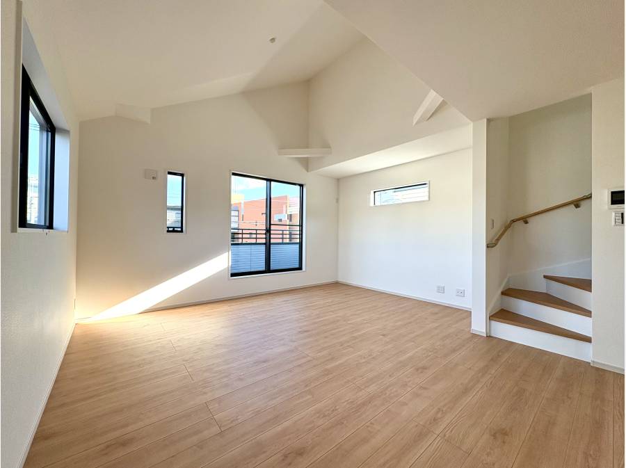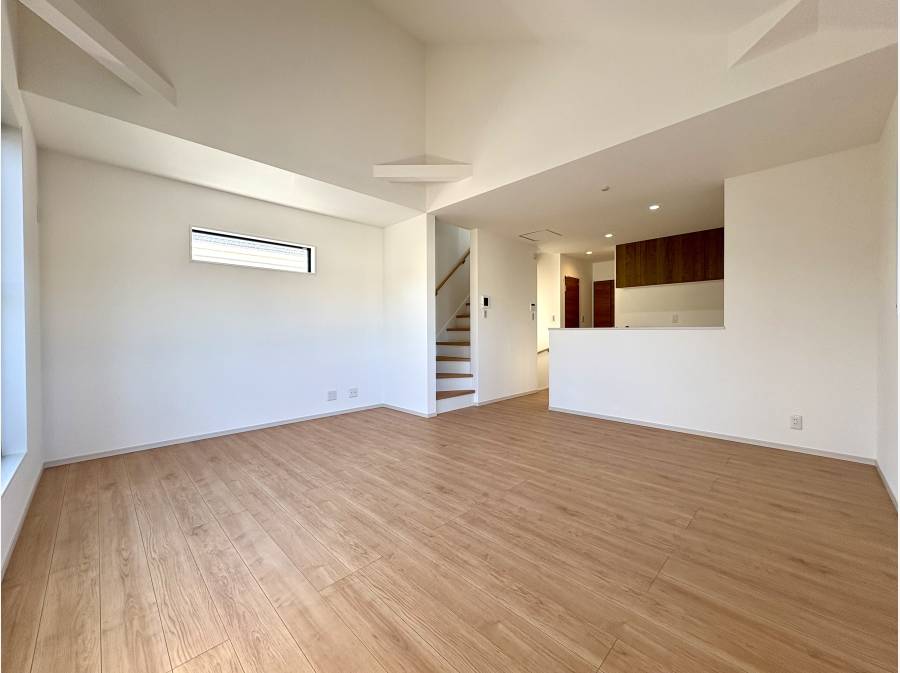 19.4帖の広大なLDK は勾配天井により開放感溢れる空間。