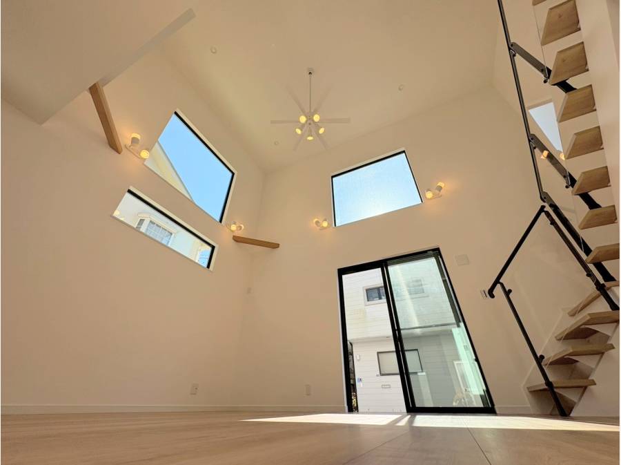 吹き抜けのリビングは開放感があり、自然と家族が集まる心地よい空間に!