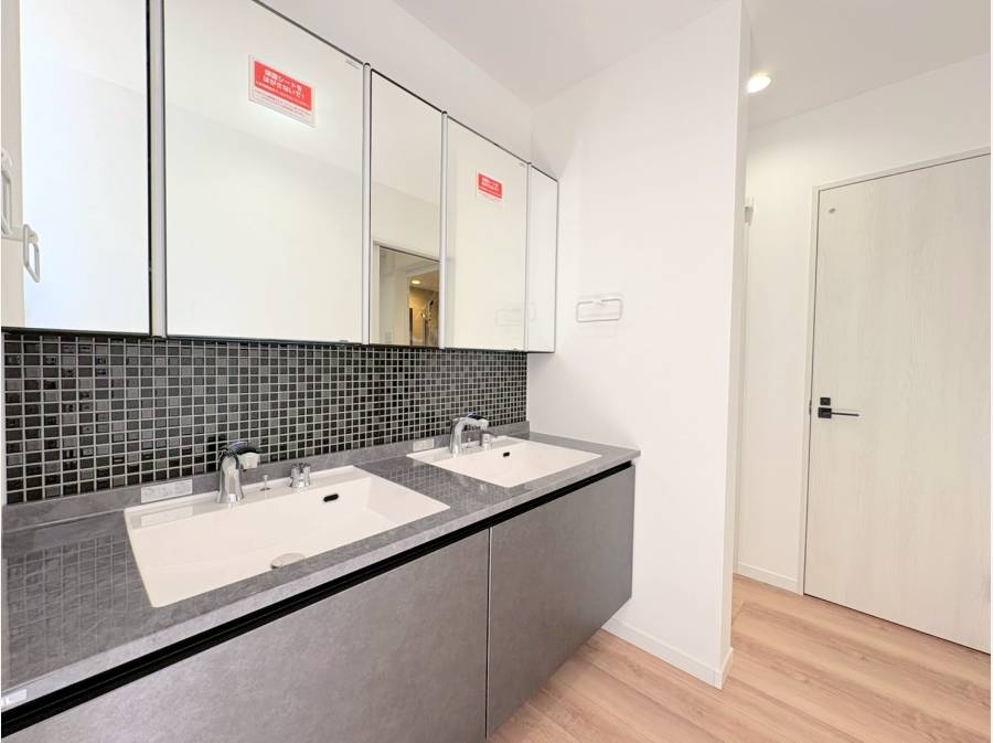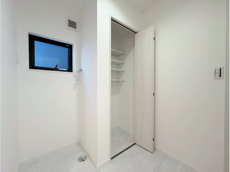 暮らしやすさを重視した間取り、エントランスとリビングのどちらからもアクセスしやすい洗面ボウル、大容量の収納スペースも!